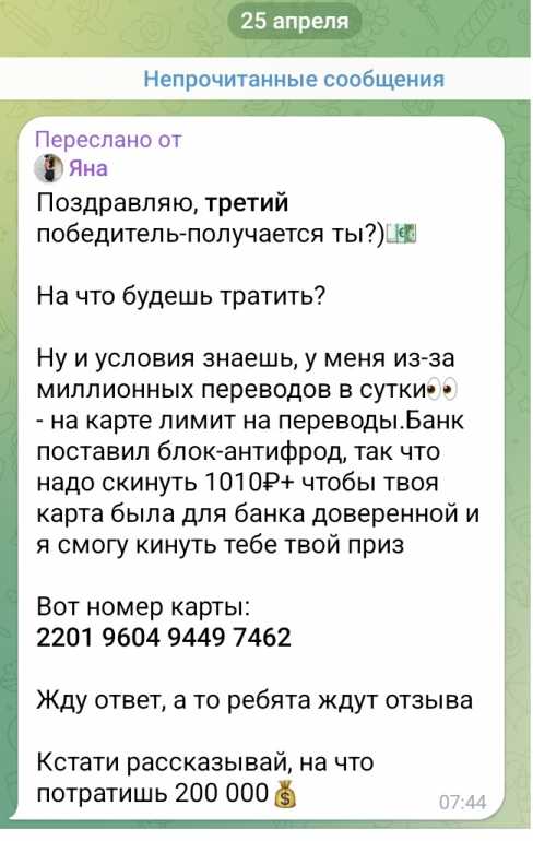 Агафоника 833 Posted April 23, 2025 (edited) Сегодня мне пришло в телеграмм сообщение от бывшего коллеги с просьбой перевести 10 тысяч буквально на пару часов. Тут совпали несколько моментов. Именно с этим человеком у меня сложились теплые взаимоотношения, мы много раз друг друга выручали. То есть, именно его просьба такого рода подозрения не вызвала. И ещё он недавно устроился на работу, там вполне могли попросить завести новую зарплатную карту в определенном банке. Фото карты на его имя мне прислали, какой банк я разглядеть не успела. Я ответила, что деньги есть, могу перевести после того, как он позвонит мне. Так как мошенники активизировались в последнее время. (Буквально в ту субботу мне звонили по поводу якобы ключей от домофона, не повелась, но осадочек остался.) А что касается карты на его имя, так фотошоп ещё никто не отменял. Короче, мошенник быстро удалил фото карты, лайкнул мое сообщение и написал: ладно. Я сама после этого набрала бывшего коллегу, и он подтвердил факт взлома. Кстати, стиль сообщений был абсолютно его, очень достоверно. Edited April 23, 2025 by Агафоника 7 Share this post Link to post Share on other sites OK В