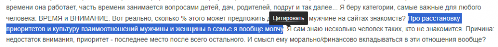 СолоНина 14613 Posted October 10 3 минуты назад, Пион4к сказал: получит то, чего ей не хватало в этих отношениях. 21 минуту назад, Лапуся сказал: Как по мне, это немного не то, чего не хватало. Разве что иллюзия востребованности и важности для мужчины. 2 минуты назад, Лапуся сказал: если серьезно, получается, что постоянно надо будет его о чем-то просить.Чего я терпеть не могу Скорее всего да. Он же не хочет встречи-праздник. Имеет право. 4 минуты назад, Мурчака сказал: сразу, на подлете так сказать - я общепит не люблю. Это убивает все сомнения и двоякие толкования. Жадный и не боится позориться. Имеет опять же право таким быть. А вот встречаться ли с таким - право автора. Но автор решила, что надо брать, и уже начала кампанию по его перевоспитанию Попробовал бы такой нелюбитель общепита друзьям сказать, мол не люблю общепит, давайте с пивом на лавочке на улице 3 1 Share this post Link to post Share on other sites OK В