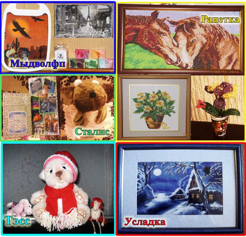 Кьяра 11233 Posted September 24 1. Виноградина - Вязание крючком, в основном сумок из шнура. Бактусы, палантины, снуды. 2. Юппи-ду - лоскутное шитьё, вязание спицами. 3. KuklaTanya - Гномы, мишки, зайцы, эпоксидная смола. 4. Сборная солянка - вышивка крестиком, мелкое вязание. 5. Осторожность - лоскутное шитьё. 1 Share this post Link to post Share on other sites OK В